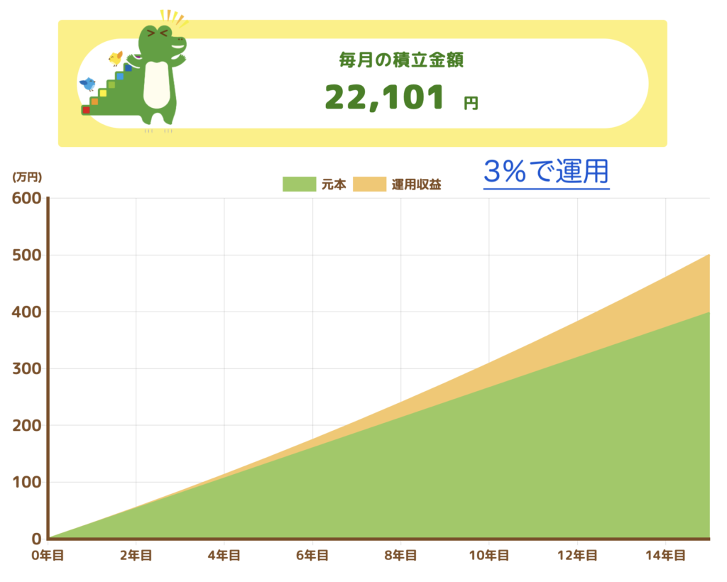 ゴール:15年後に子供の教育資金として500万円を貯めたい