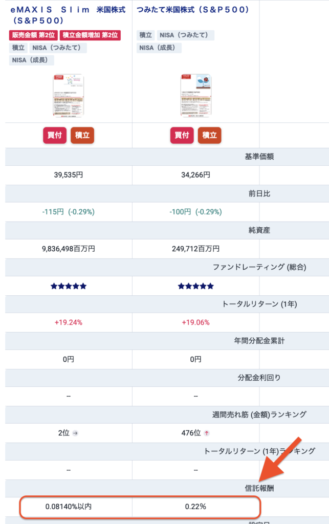 信託報酬をみてみると、倍の差があるのがわかります