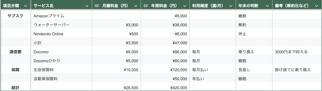 - クレジットカード: 年会費がかかるもの、ポイント還元率が低いもの、特典を使いこなせていないものは解約を検討しましょう